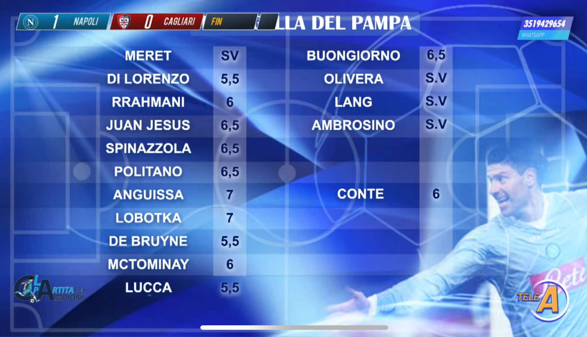 L'ex attaccante azzurro Roberto 'Pampa' Sosa, ai microfoni di Tele A nel corso de 'La Partita dei Campioni', ha stilato le sue pagelle per Napoli-Cagliari 1-0: "5,5 a Lucca ma lo difendo perché lui doveva fare 15 minuti nella sua testa inizialmente, cresce poi col tempo, e psicologicamente ha sentito anche una pressione enorme. Poi in questa partita serviva solo un gol contiano per vincerla e ci sono diverse cose da sistemare. Poi il calcio italiano ti offre anche avversari di questo tipo. A Conte do 6, i migliori con 7 sono Anguissa e Lobotka". Di seguito la foto delle pagelle complete.