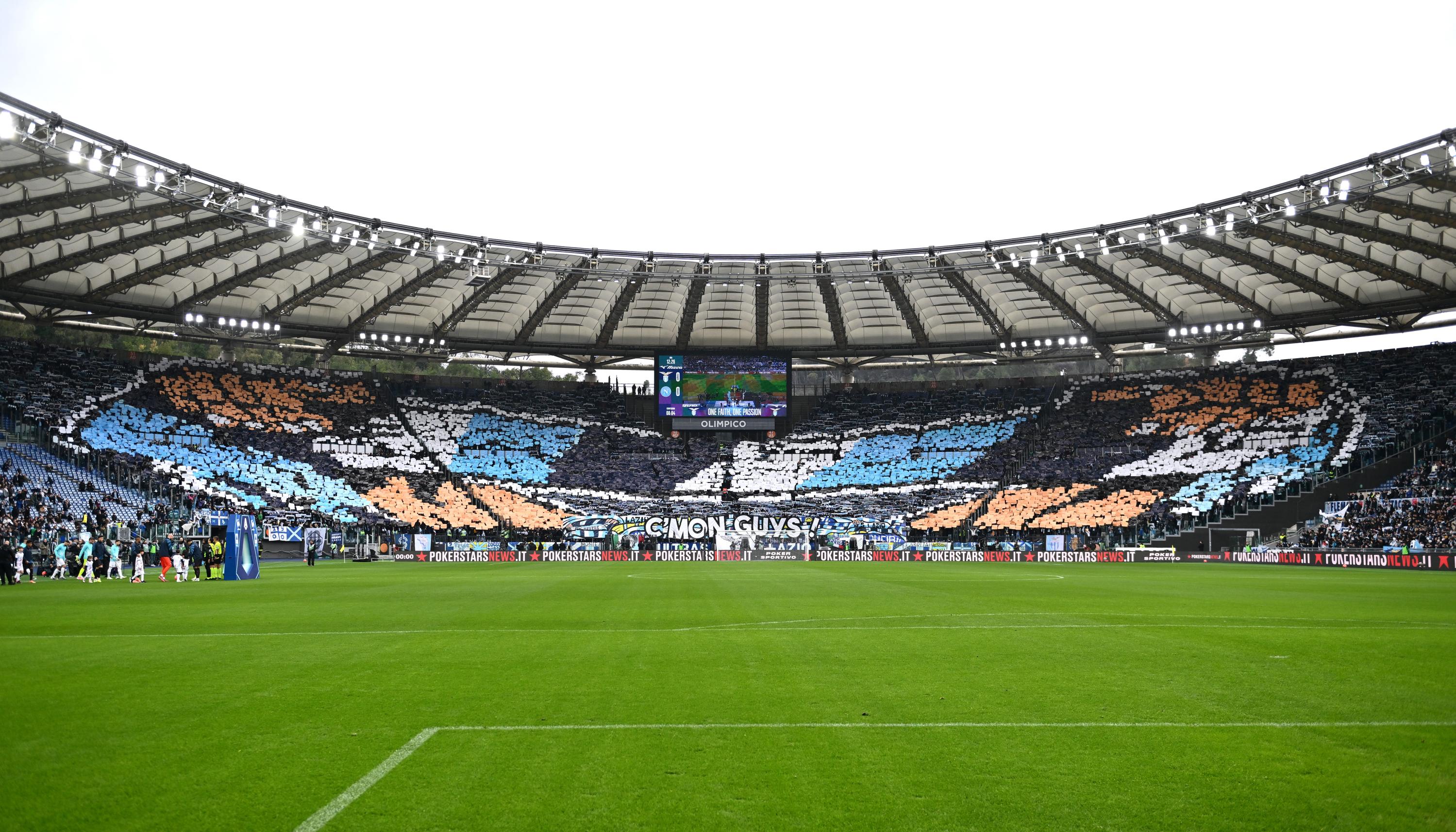 Atmosfera caldissima all'Olimpico per Lazio-Napoli, lunch match della 18esima giornata di Serie A. Per l'occasione c'è il sold-out allo stadio con una spettacolare coreografia esposta dai tifosi biancocelesti con i basso al centro della Curca Nord la scritta "C'mon Guys!". Pienissimo anche il Settore Ospiti, si fanno già sentire in questo pre-partita i tantissimi tifosi azzurri con i cori.