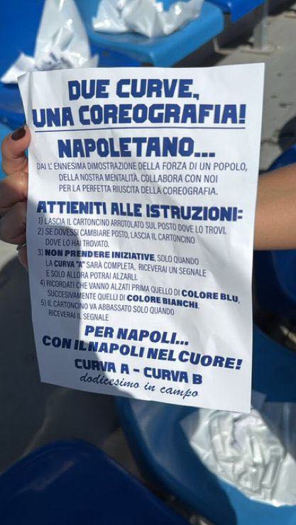 Maradona sold-out per la nona gara consecutiva quest'oggi per Napoli-Fiorentina, in programma alle 15. Grande attesa nell'impianto di Fuorigrotta per la sfida che potrebbe riportare il Napoli nella scia della capolista Inter. Gli ultras di entrambe le Curve sono fibrillazione e prima del match hanno distribuito un volantino con le istruzioni di una coreogragia congiunta.