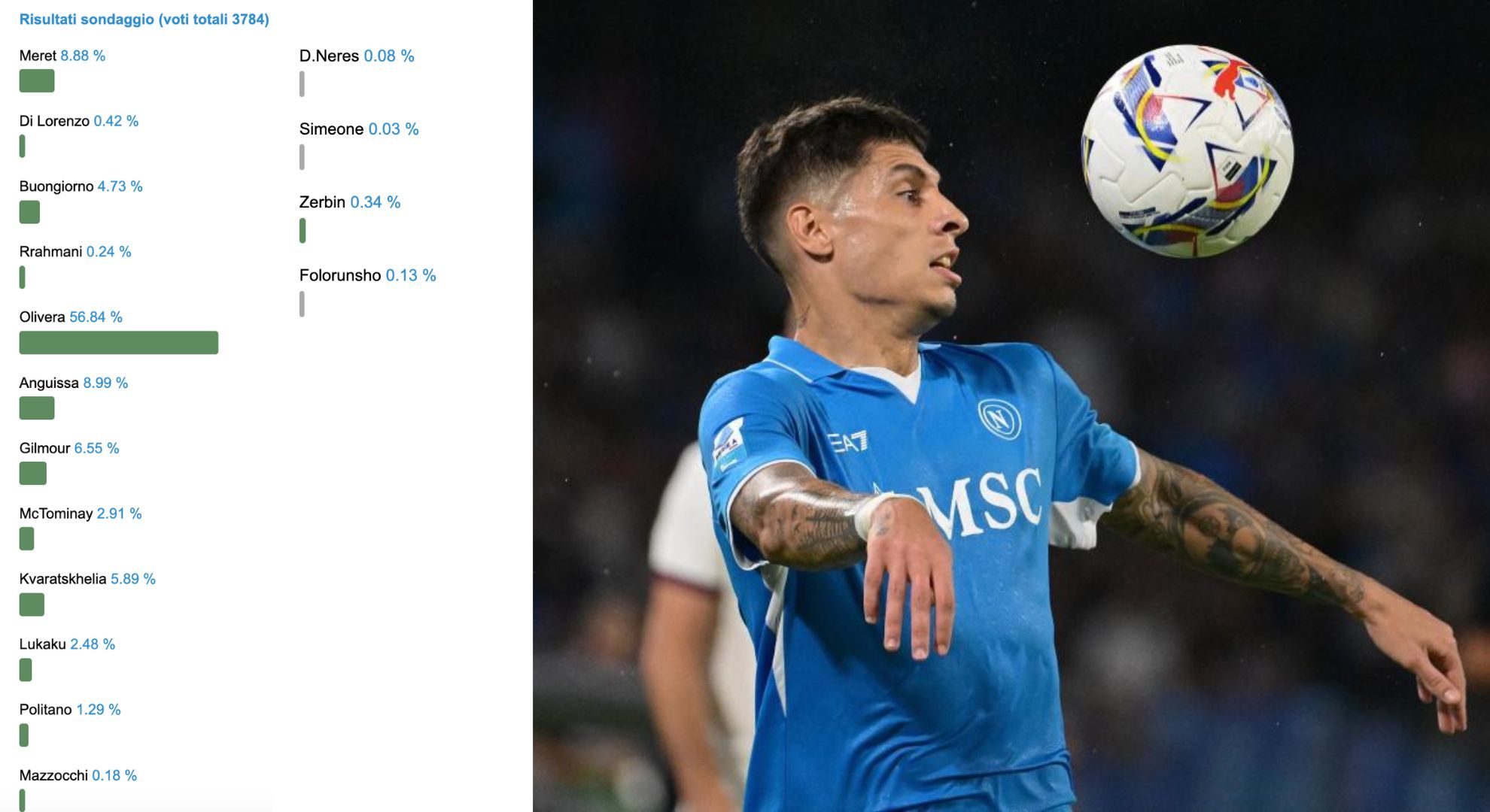 È senza dubbio Mathías Olivera il migliore in campo di Milan-Napoli, scelto dagli utenti di TuttoNapoli. Il terzino azzurro vince il consueto sondaggio proposto dalla nostra redazione, grazie alla super prestazione di martedì sera contro i rossoneri. L'uruguaiano ha convinto i tifosi dopo esser stato in ogni zona del campo, dopo aver annullato Chukwueze e aver dominato nei duelli e in fase offensiva. Olivera ha dominato di netto sui compagni nelle votazioni, superando tutti di più della metà dei voti! Sulle migliaia di preferenze arrivate, Olivera ha ricevuto il 56%. Seguono, ma molto staccati, Anguissa e Gilmour.