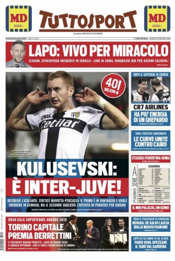 PRIMA PAGINA - Tuttosport: "Kulusevski, è Inter-Juve!"