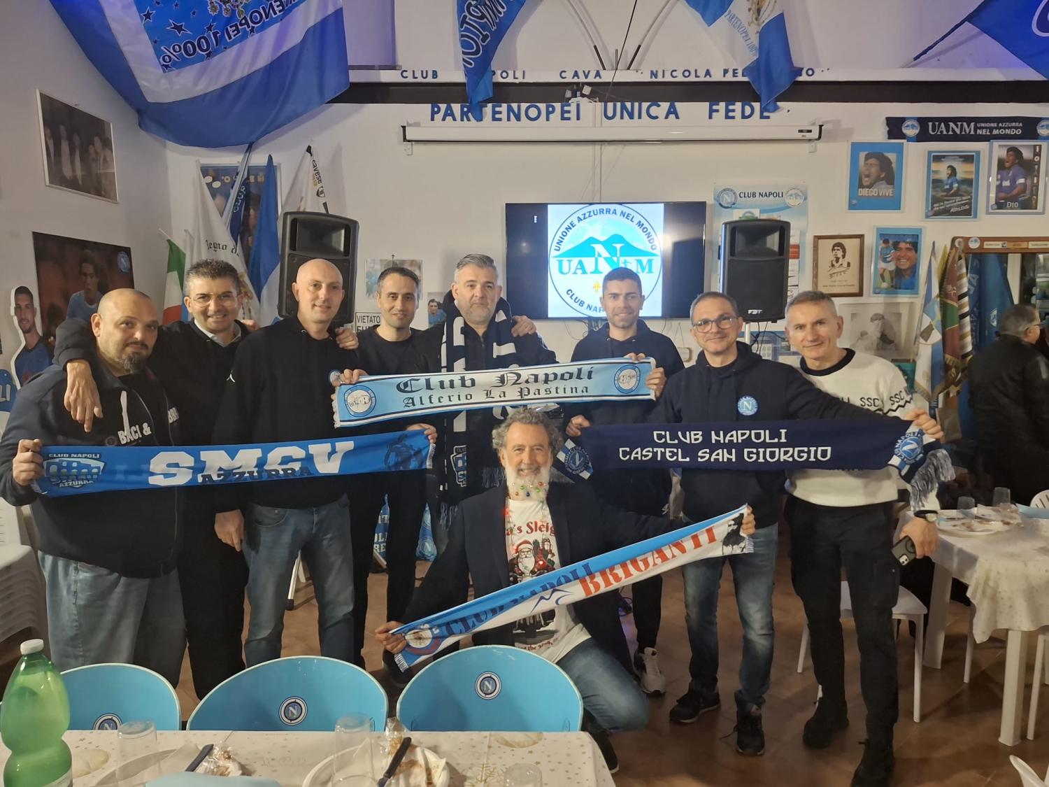 A Cava de' Tirreni si è tenuto il raduno natalizio dell'associazione UANM (Unione Azzurra Nel Mondo) a cui hanno preso parte circa 30 Club Napoli provenienti non solo da ogni parte della Campania, ma dell'Italia! Per citarne alcuni, dalla Sardegna il Club Napoli Cagliari, direttamente dalla Puglia il Club Napoli Brindisi o ancora dalla Lombardia il Club Napoli Brescia, senza tralasciare i locali da Castel San Giorgio o Sarno ad esempio, come testimoniano i nostri scatti.