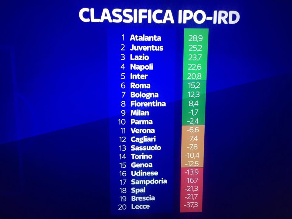 Sky - Classifica Ipo-Ird usata in nazionale: Napoli quarto, crea di più e subisce meno dell’Inter