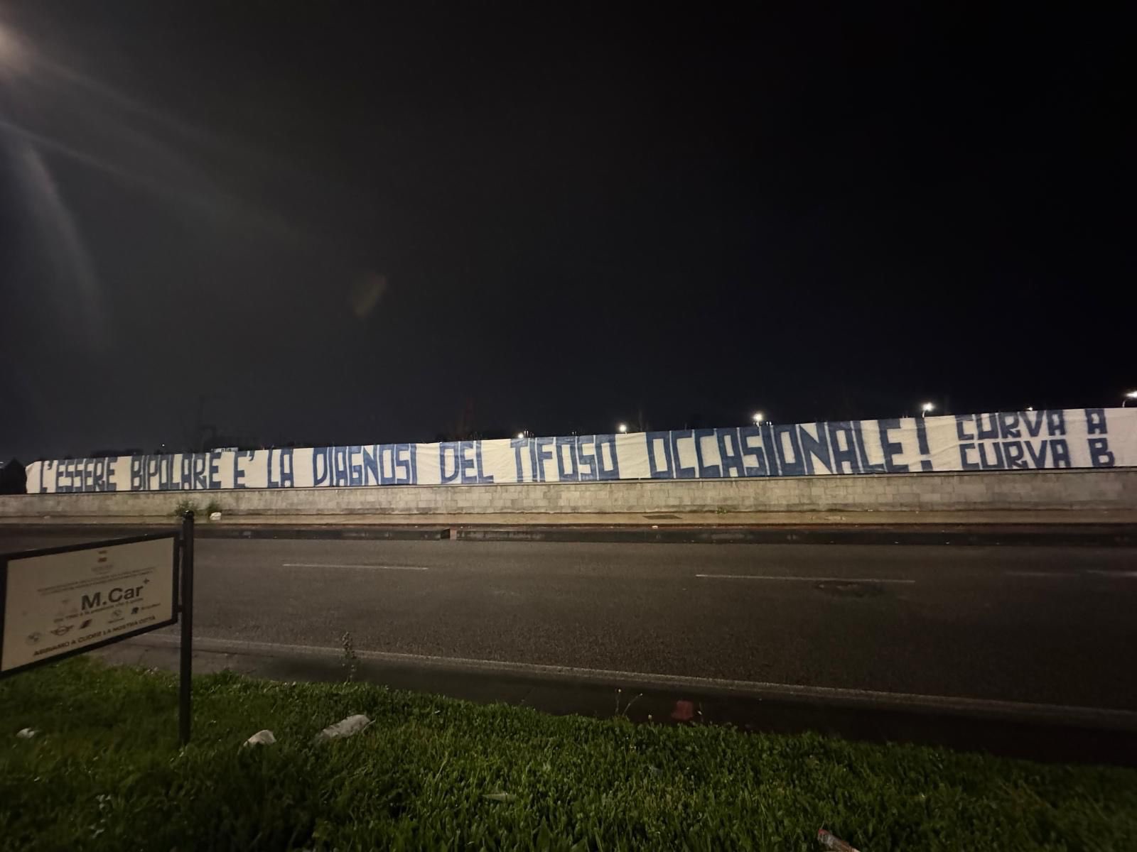 Striscioni Curva A e B in città: “Essere bipolare è la diagnosi del tifoso occasionale”