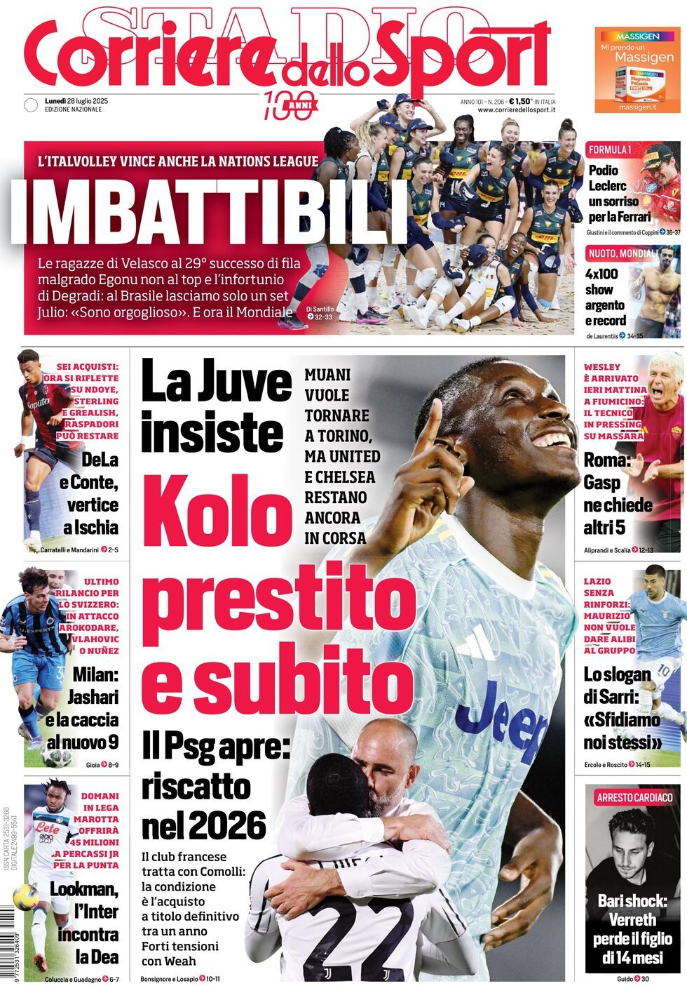 La Juventus accelera per Randal Kolo Muani: questa la notizia in primo piano sulla prima pagina del Corriere dello Sport. Il centravanti francese vuole tornare a Torino e ha già dato il suo assenso all’operazione, nonostante l’interesse persistente di Manchester United e Chelsea. Il PSG ha aperto al prestito con diritto di riscatto nel 2026. Contatti serrati con Cristiano Giuntoli, mentre si lavora per limare i dettagli con Comolli. Forte il pressing bianconero, anche per allentare le tensioni interne e trovare l’erede di Vlahovic.