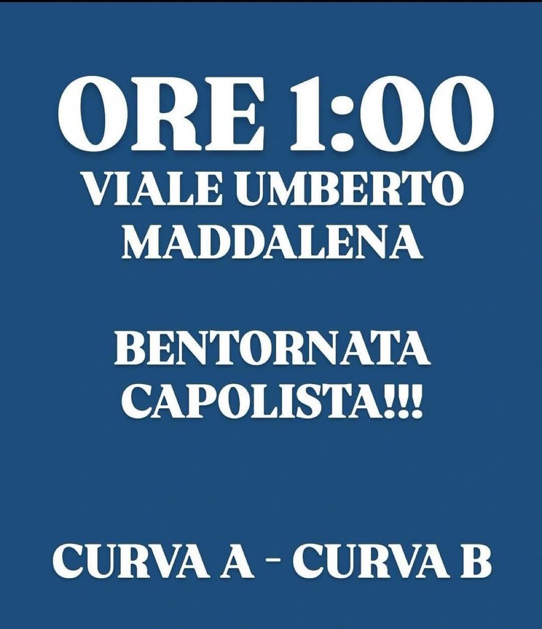 Molti tifosi si stanno organizzando in queste ore per essere presenti a Capodichino per l’accoglienza alla squadra. Appuntamento all'1 a Viale Comandante Umberto Maddalena per il rientro della squadra.