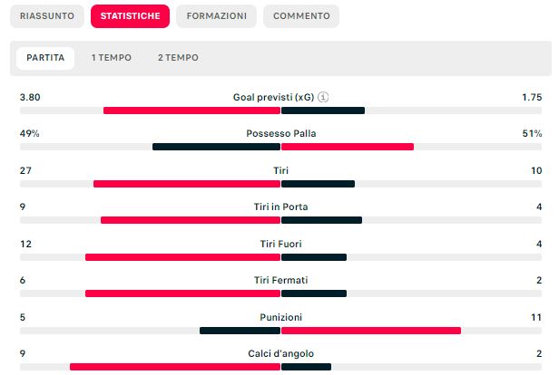 Lo testimoniano i dati in tabella: gli uomini di Calzona hanno prodotto più del doppio rispetto ai giallorossi in quanto a gol attesi (3,80xG contro 1,75xG). Anche le statistiche sulle conclusioni confermano l'andazzo del match praticamente a senso unico: sono 27 i tiri del Napoli di cui 9 in porta. Gli uomini di De Rossi invece ci hanno provato solo 10 volte, centrando lo specchio in 4 occasioni.