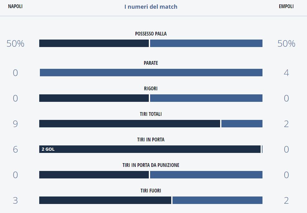 TABELLA - Le statistiche del primo tempo: il Napoli surclassa l'Empoli per tiri in porta, i numeri