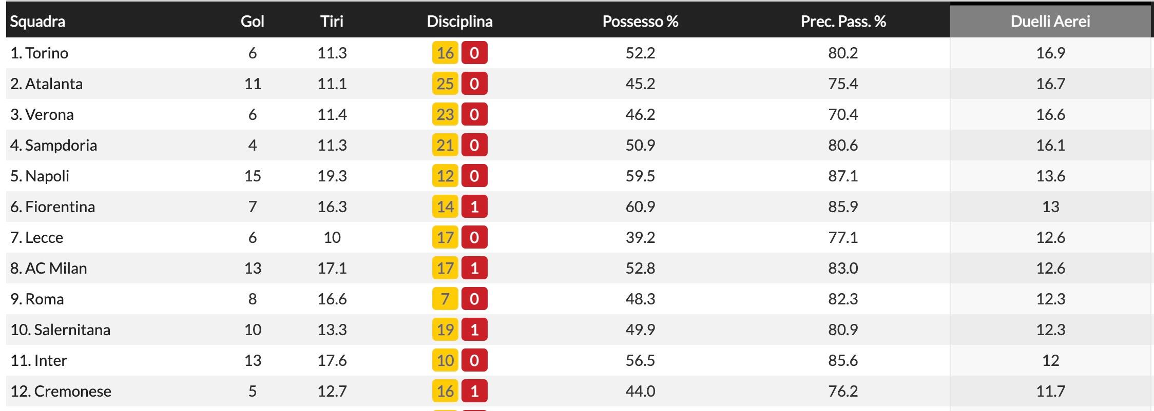 Statistica insolita, anche rispetto agli scorsi anni, quella che riguarda il Napoli. La squadra di Spalletti è quinta in Serie A per duelli aerei: 13.6 a partita, solo Sampdoria, Verona, Atalanta e Torino hanno dati migliori praticando un gioco più fisico. Il Napoli sin dagli anni di Sarri è sempre stato negli ultimi posti in questa particolare graduatoria e quindi Spalletti sta riuscendo nella sua missione di completare fisicamente il suo Napoli. Di seguito tutti i numeri.