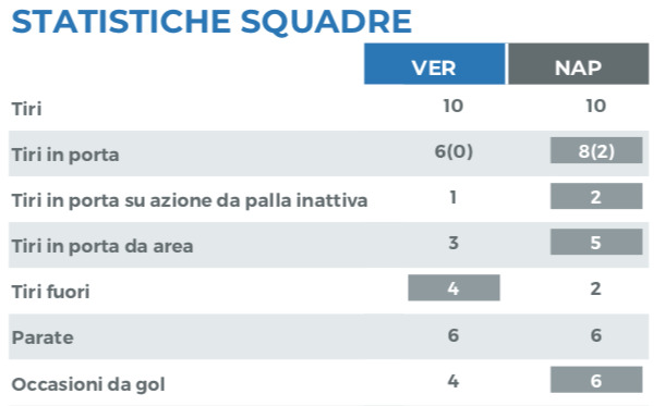 Fanno discutere le parole del tecnico del Verona Ivan Juric, il quale dopo la vittoria degli azzurri, in conferenza, ha commentato dicendo: "Il Napoli non ha mai tirato". Come si evince dai dati statistici della Lega di Serie A, le teorie del tecnico croato si basano sul nulla: il Napoli, in 90 minuti, ha effettuato 10 tiri e creato la bellezza di 6 occasioni nitide da gol.