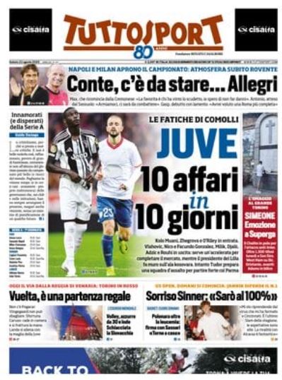 Tuttosport: "Conte, c'è da stare...Allegri. Riparte la Serie A"