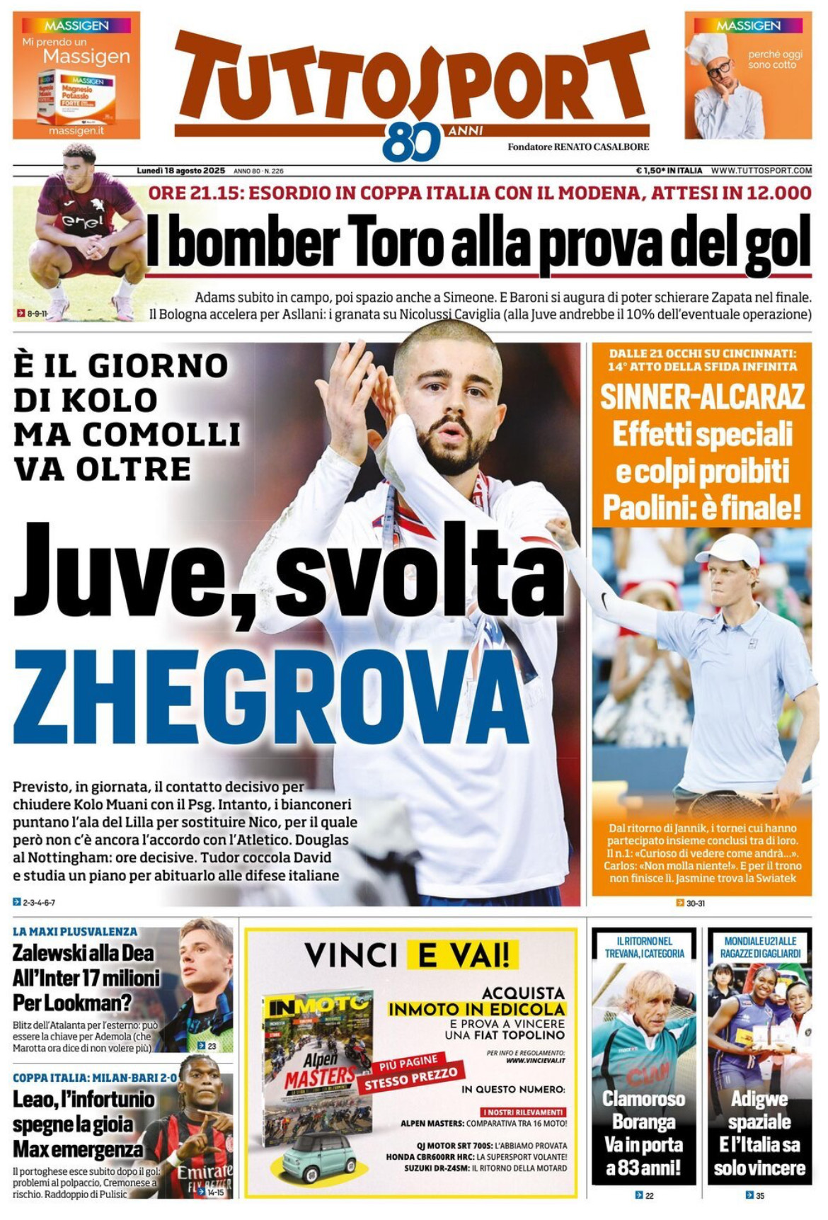 Tuttosport sull'attacco Juve: "Oggi è il giorno di Kolo. C'è l'idea Zhegrova"