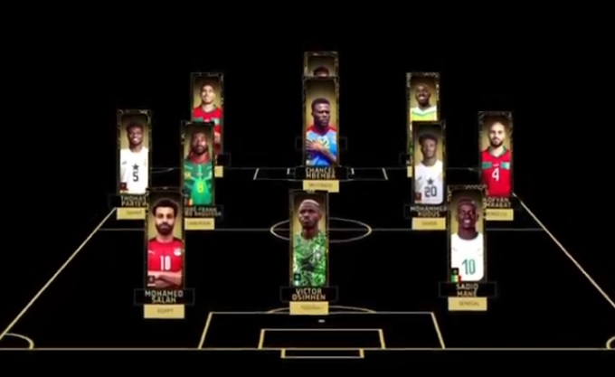 TOP 11 (3-4-3): Onana (Camerun); Hakimi (Marocco), Mbemba (Congo), Koulibaly (Senegal); Partey (Ghana), Aguissa (Camerun), Kudus (Ghana), Amrabat (Marocco); Mane (Senegal), Osimhen (Nigeria), Salah (Egitto)