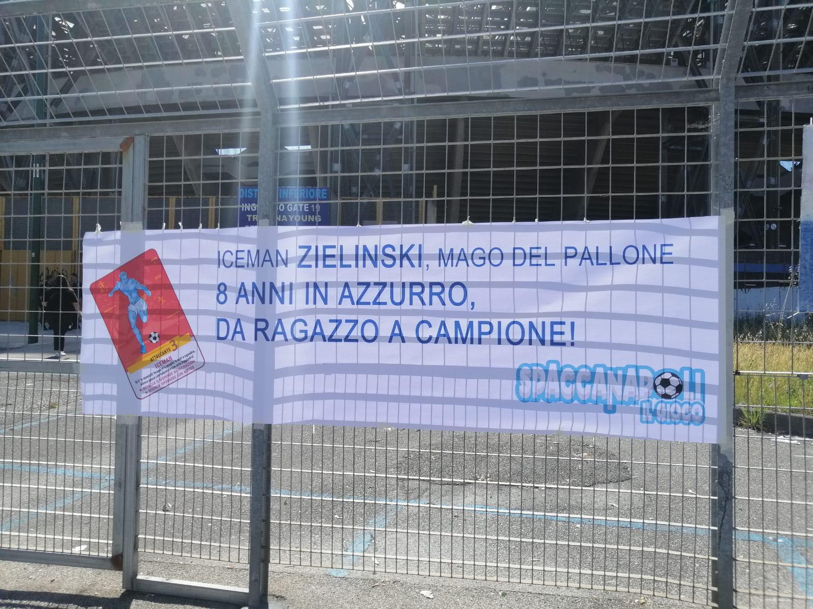A tributare il giusto saluto ad uno dei protagonisti del terzo scudetto del Napoli sono stati i tifosi di "Spaccanapoli il gioco", che all'esterno dello Stadio Diego Armando Maradona, in occasione dell'ultima giornata di campionato, hanno affissato uno striscione che recita: "Iceman Zielinski, mago del pallone. 8 anni in azzurro, da ragazzo a campione!".