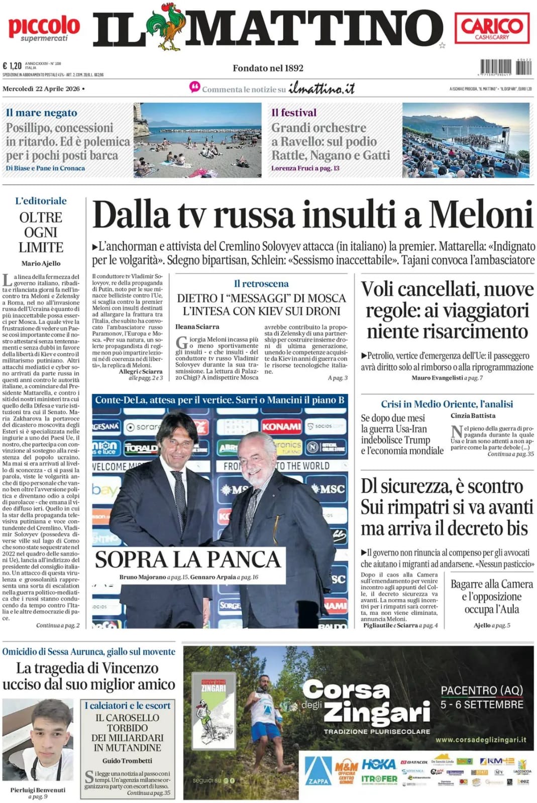 Nella prima pagina odierna, Il Mattino dedica ampio spazio alle vicende del Napoli, come da tradizione. Il titolo scelto è eloquente: “Sopra la panca”, con il focus tutto sul futuro della guida tecnica.