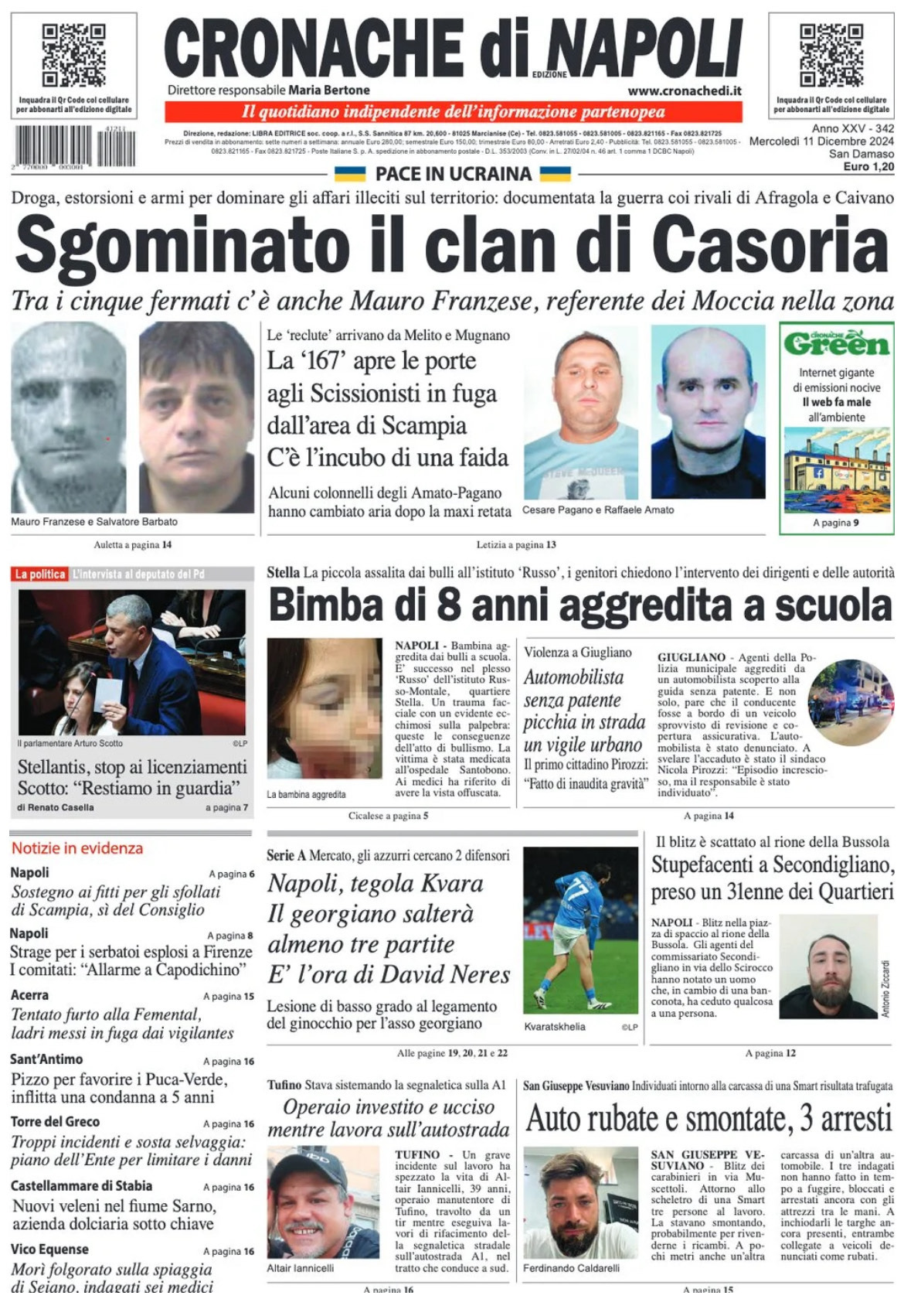Brutta tegola per Antonio Conte, che perde Khvicha Kvaratskhelia a causa di una lesione di basso grado del legamento collaterale mediale. L'asso georgiano, si legge sulla prima pagina di Cronache di Napoli, dovrà certamente saltare le prossime tre partite contro Udinese, Genoa e Venezia ma è in dubbio anche per quella di inizio anno contro la Fiorentina. Scalda i motori, dunque, David Neres, finito un po' indietro nelle gerarchie dopo un inizio di stagione promettente.