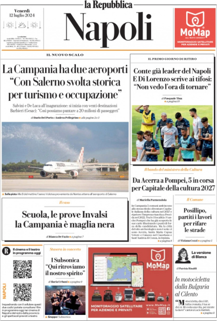 "Conte già leader del Napoli". Così titola oggi la prima pagina de La Repubblica, per quanto riguarda la sua edizione napoletana. Il tecnico leccese si è già preso la scena, facendo lavorare duro i suoi ragazzi.