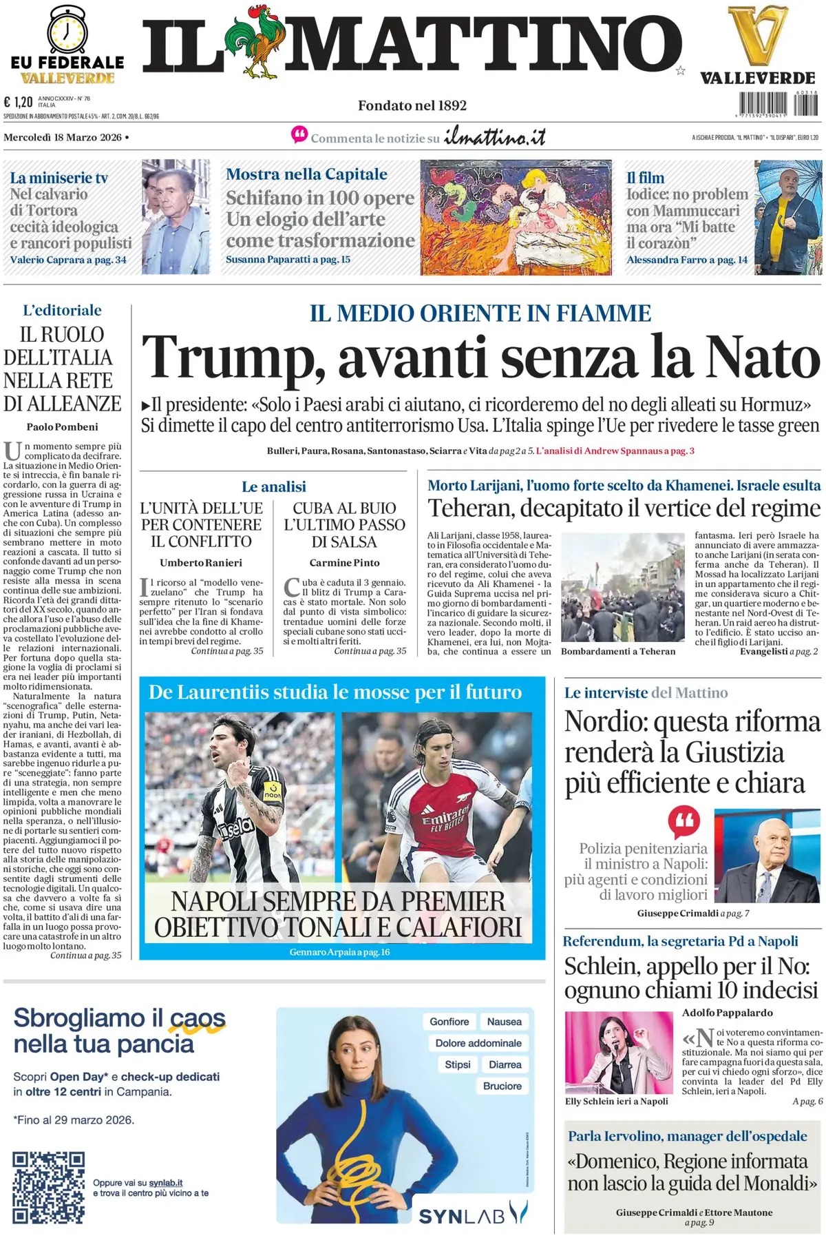 Come si legge in prima pagina, “Napoli sempre da Premier, obiettivo Tonali e Calafiori”, con il presidente azzurro già al lavoro per studiare le strategie più efficaci in vista del futuro. Una linea chiara: investire su talento, identità e profili pronti per il grande salto.