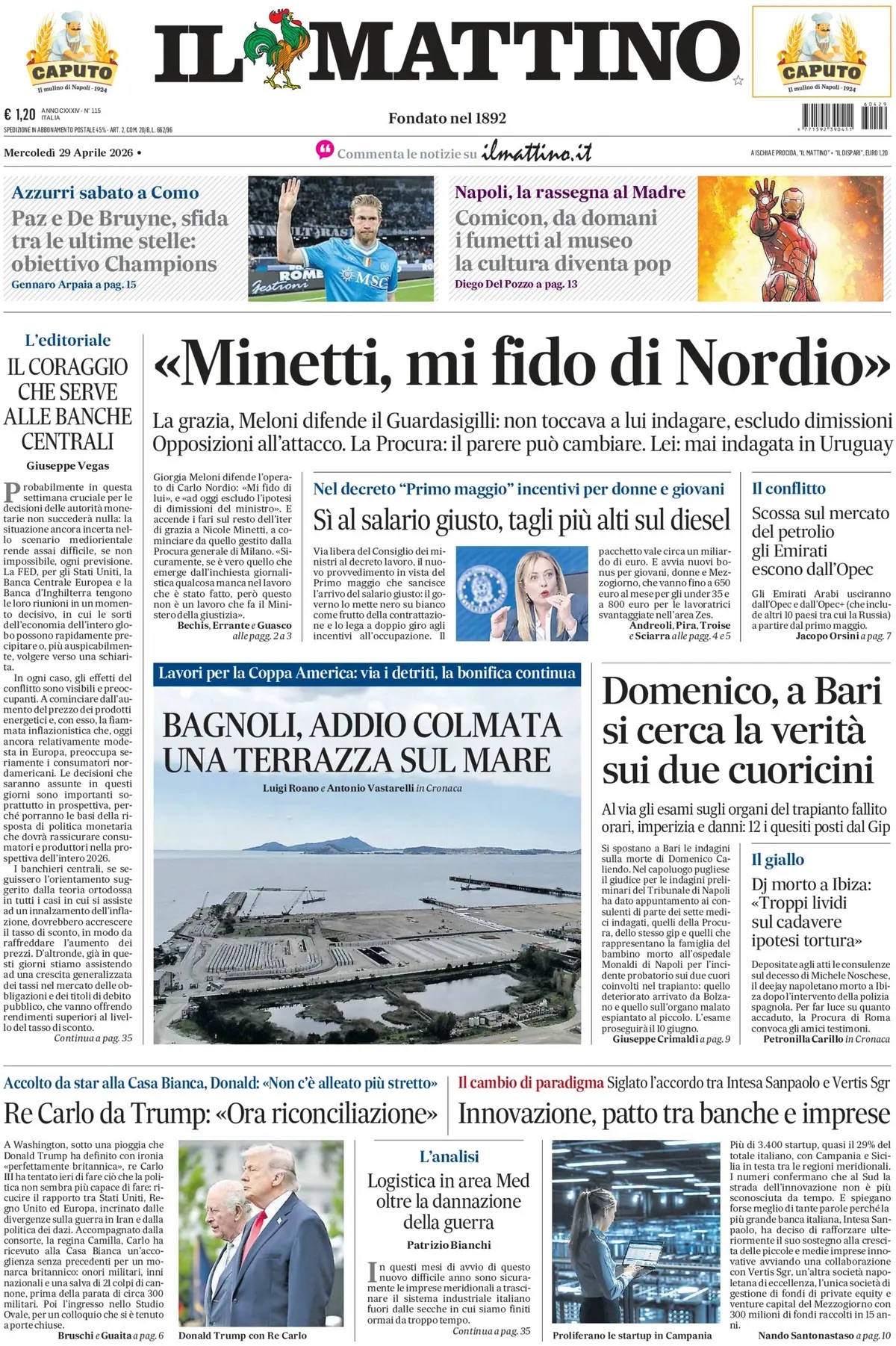 Come di consueto, la prima pagina odierna de Il Mattino dedica ampio spazio al Napoli. In evidenza la sfida di campionato contro il Como, con un focus particolare sul confronto tra il talento emergente e una leggenda ormai verso il finale di carriera, capace negli anni di incantare il calcio europeo e mondiale.