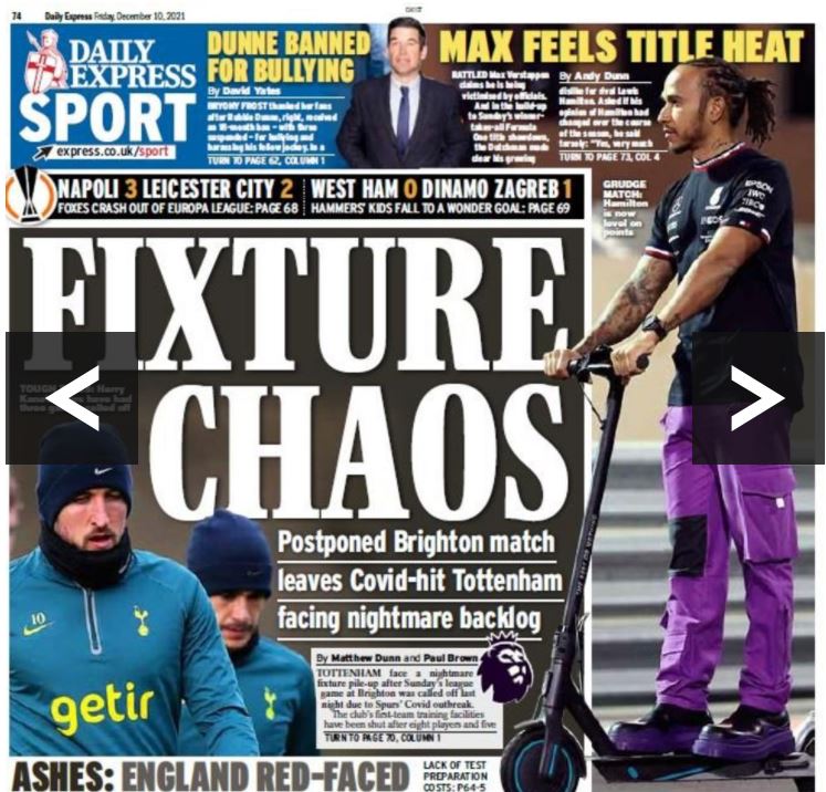 Di seguito le aperture inglesi di oggi, venerdì 10 dicembre, in Inghilterra, con particolare riferimento al ko del Leicester che costa l'eliminazione dall'Europa League.