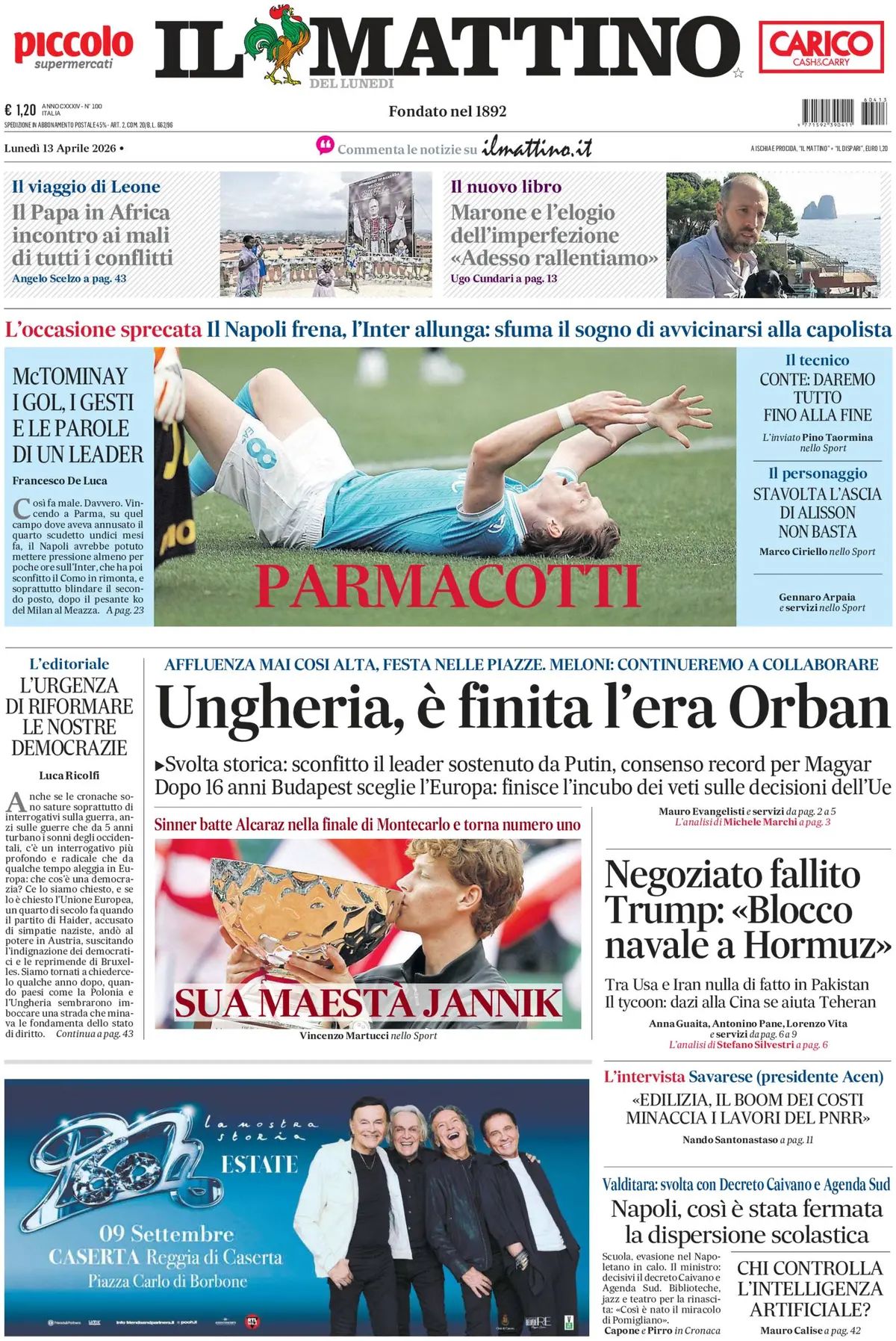 “Così fa male”. È questo ciò che si legge sulla prima pagina de Il Mattino dopo l’1-1 del Napoli sul campo del Parma. Il quotidiano sottolinea come “un successo avrebbe permesso ad Antonio Conte di accorciare sull'Inter per mettere pressione alla squadra di Chivu prima del Como e di blindare il secondo posto dopo il crollo del Milan”, rendendo ancora più amaro il risultato finale.