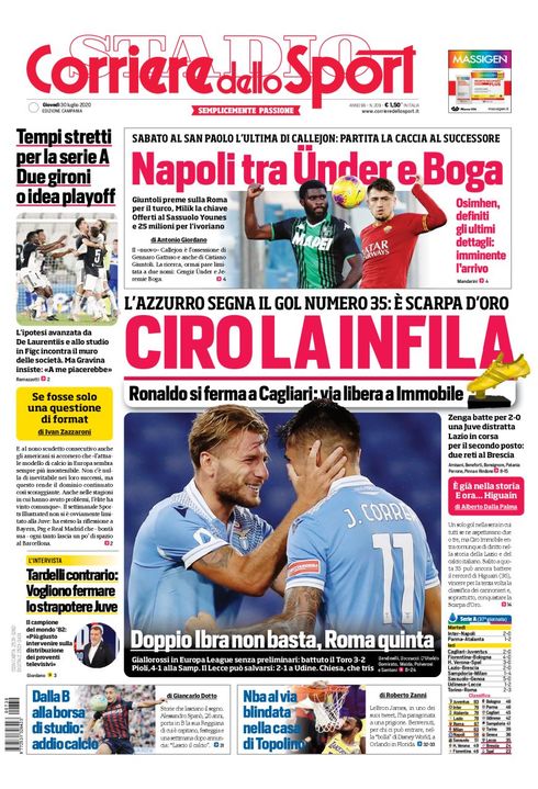 PRIMA PAGINA - CdS Campania: "Osimhen, annuncio imminente! Under o Boga..."