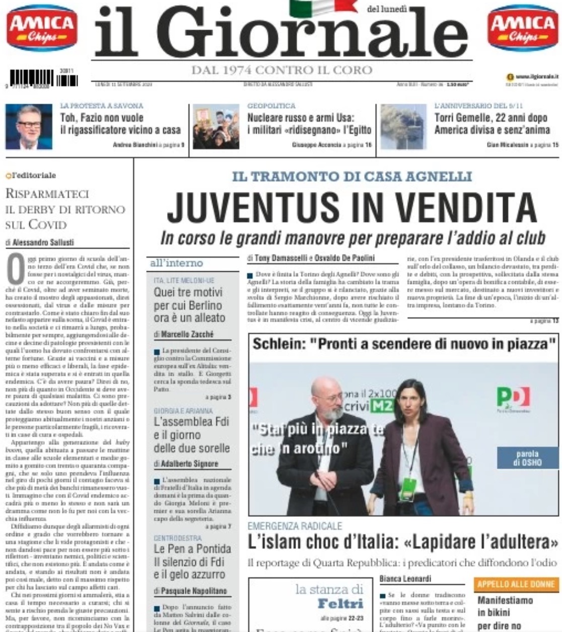 Il quotidiano milanese, in un articolo firmato dai giornalisti Tony Damascelli e Osvaldo De Paolini, spiega che "oggi la Juventus è in manifesta crisi, al centro di vicende giudiziarie, con l'ex presidente (Andrea Agnelli, ndr) trasferitosi in Olanda e il club sull'orlo del collasso, un bilancio devastato, tra perdite e debiti, con la prospettiva, sollecitata dalla stessa famiglia, dopo un'opera di bonifica contabile, di essere messo sul mercato". Bianconeri dunque a caccia di un acquirente che possa traghettare il club verso una nuova era.