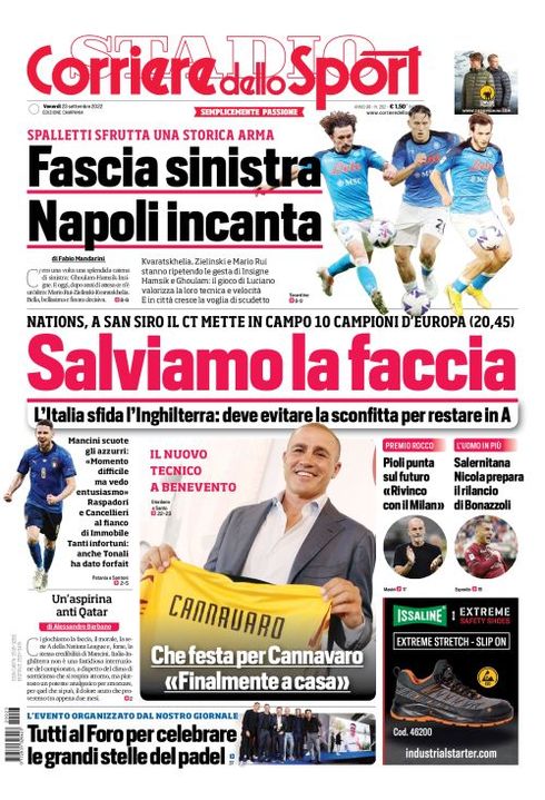”Fascia sinistra: Napoli incanta”. Titola così il Corriere dello Sport, nella sua edizione Campania di oggi. "Spalletti sfrutta una storica arma. Kvaratskhelia, Zielinski e Mario Rui stanno ripetendo le gesta di Insigne, Hamsik e Ghoulam: il gioco di Luciano valorizza la loro tecnica e velocità. E in città cresce la voglia di scudetto".