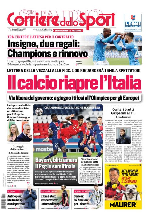PRIMA PAGINA - CdS Campania: "Insigne, due regali: Champions e rinnovo"