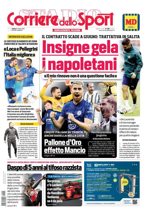 PRIMA PAGINA - CdS Campania: "Insigne gela i napoletani"