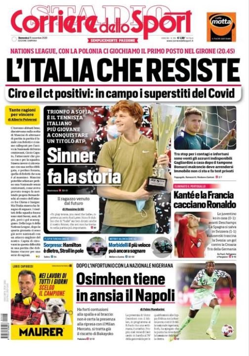 Tra campo e mercato, il Corriere dello Sport nella sua edizione campana dedica ovviamente tanto spazio al Napoli in prima pagina. In taglio basso il quotidiano si sofferma sull'infortunio di Victor Osimhen: "Osimehen tiene in ansia il Napoli". Nel sottotitolo prosegue: "Ha forti contusioni alla spalla e al braccio, non è certa la presenza con il Milan. Mercato, si tratta già il riscatto di Bakayoko".