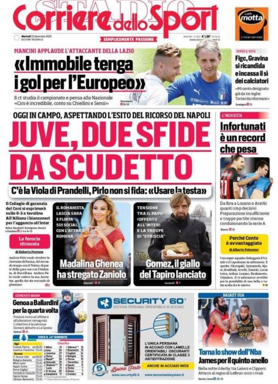 PRIMA PAGINA - CdS: "Da Ibra a Lozano, quanti stop decisivi"