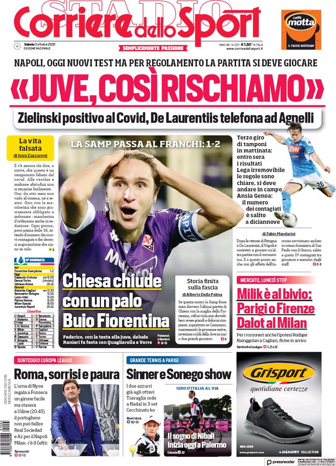 "Così rischiamo" avrebbe detto De Laurentiis ad Agnelli dopo la positività al Covid di Zielinski. C'è grande preoccupazione in vista del match di domani ma per la Lega si deve ugualmente giocare. Questa mattina terzo e ultimo giro di tamponi. Fronte mercato, Milik al bivio: per lui Psg oppure la Fiorentina.