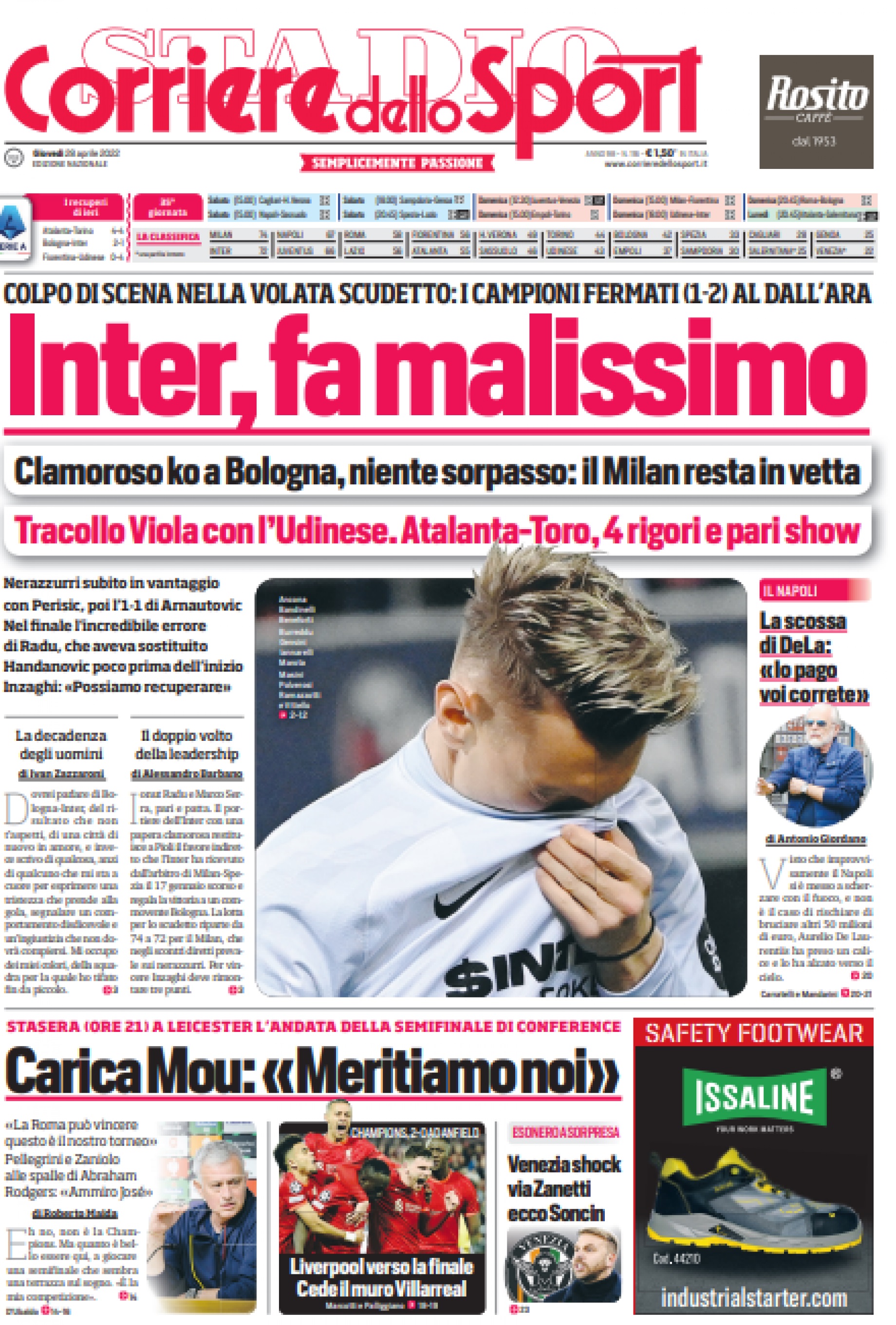 PRIMA PAGINA - CdS: "Inter, fa malissimo"