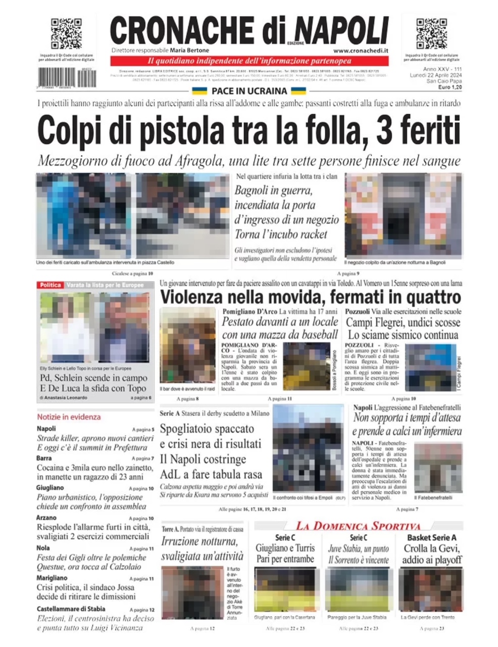 "Spogliatoio spaccato e crisi nera di risultati: il Napoli costringe ADL a fare tabula rasa" è il titolo che si può leggere nella prima pagina di Cronache di Napoli in merito alla squadra di Calzona. Il tecnico aspetta la fine della stagione e poi andrà via. De Laurentiis prepara la rivoluzione: si riparte da Khvicha Kvaratskhelia, ma servono almeno cinque nuovi acquisti.