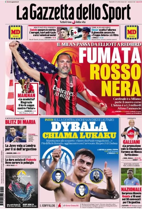 PRIMA PAGINA - Gazzetta: "Milan, fumata rossonera. Dybala chiama Lukaku"