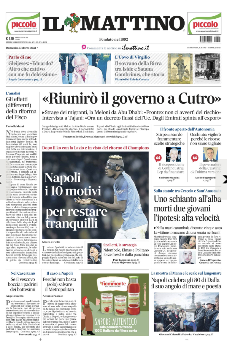 PRIMA PAGINA - Il Mattino: "Dieci motivi per restare tranquilli"