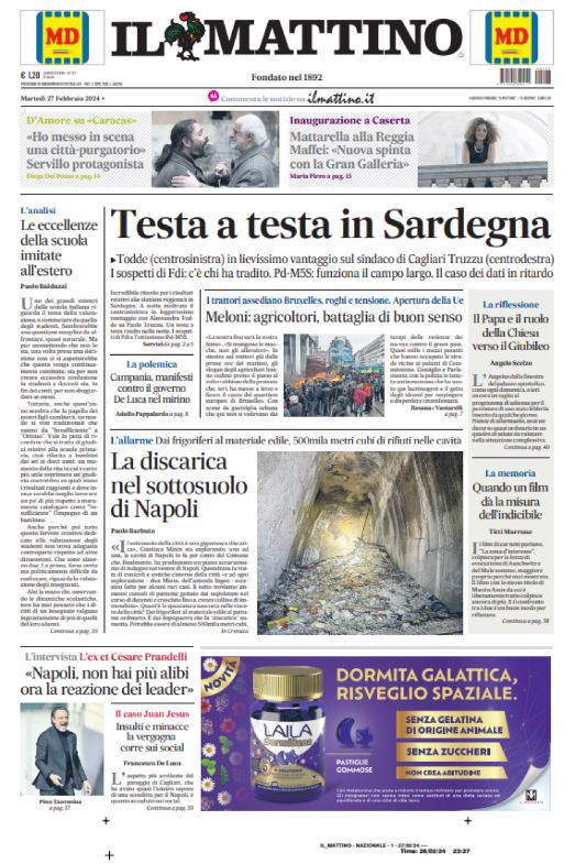 Nell'edizione odierna, Il Mattino dedica spazio in prima pagina alla situazione degli azzurri dopo il pareggio contro il Cagliari: "Napoli, non hai più alibi: ora la reazione dei leader". Spazio anche ai vergognosi insulti di alcuni "tifosi" sui social di Juan Jesus dopo l'errore di domenica: "Caso Juan Jesus, insulti e minacce: la vergogna corre sui social".