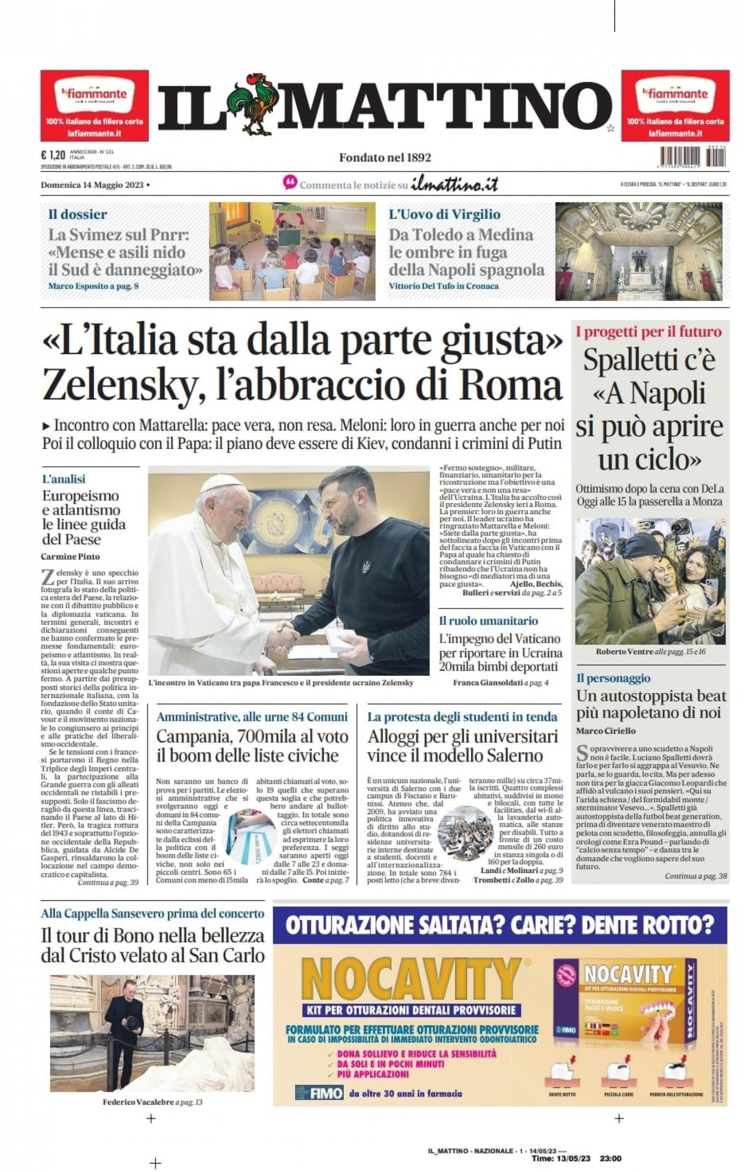 Lo sport è in colonna a destra nell'edizione odierna de Il Mattino. Il quotidiano napoletano dà spazio alle dichiarazioni di Spalletti dopo l'incontro con De Laurentiis: "Spalletti c'è: 'A Napoli si può aprire un ciclo'. Ottimismo dopo la cena con DeLa. Oggi alle 15 la passerella a Monza".