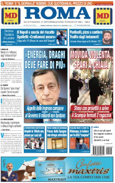 "Il Napoli a caccia del riscatto". E' questo il titolo che Il Roma propone in prima pagina nel giorno della sfida che vedrà impegnato il Napoli sul campo dell'Empoli. Il messaggio lanciato da Luciano Spalletti in conferenza stampa è stato chiaro: "Crediamoci ancora".