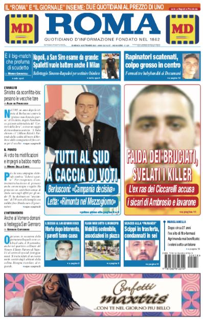 E' il big match che sa di scudetto, quello tra Napoli e Milan. Stasera al Meazza due delle tre capoliste attuali della Serie A si sfideranno e Il Roma oggi in edicola titola così in prima pagina: "Napoli, a San Siro esame da grande: Spalletti vuole battere anche il Milan", si legge in taglio alto.