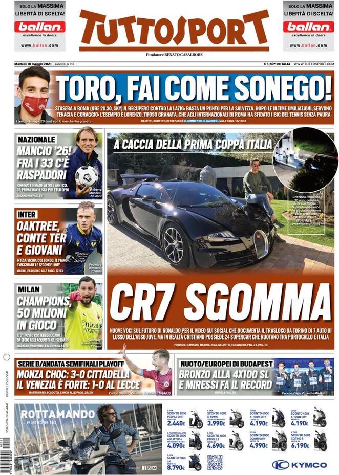 PRIMA PAGINA - Tuttosport: "CR7 sgomma"