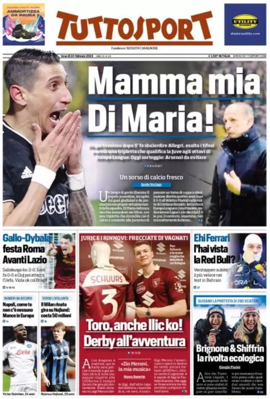 L'apertura è ovviamente dedicata alla Juventus, ma sulla prima pagina di Tuttosport trova spazio anche il Napoli e i suoi numeri da record. Il quotidiano torinese si sofferma in un box sugli azzurri: "Napoli, come te non c'è nessuno. Manco in Europa".