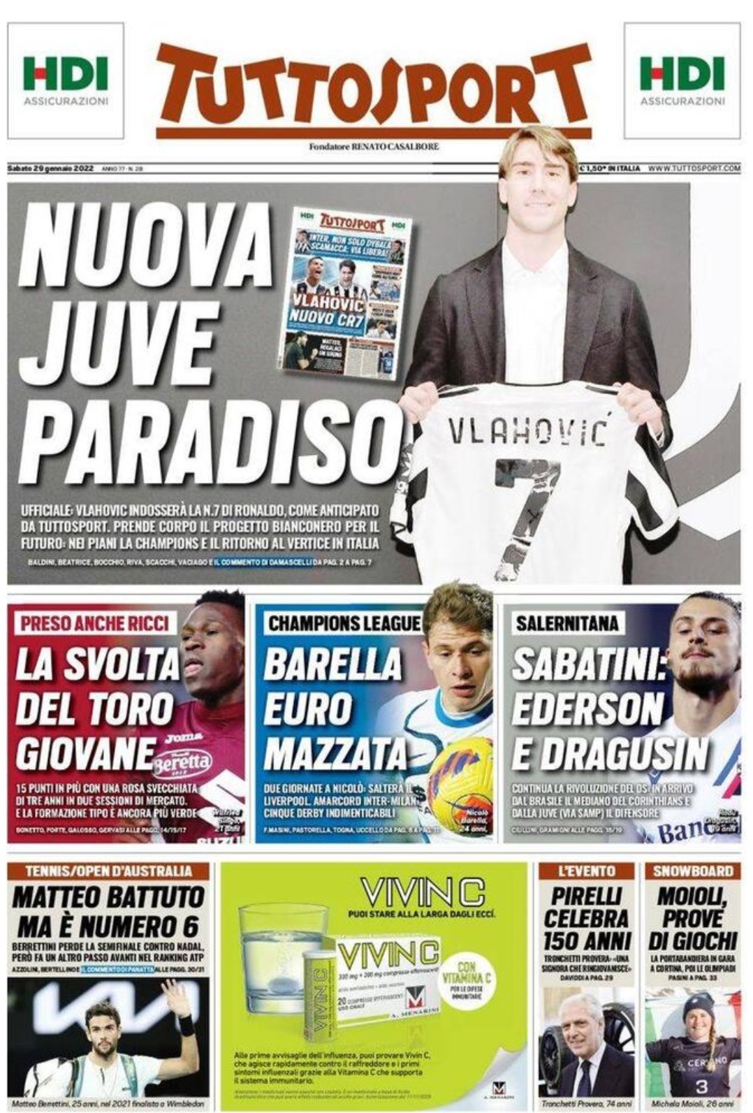 PRIMA PAGINA - Tuttosport sull'affare Vlahovic: "Nuova Juve paradiso"