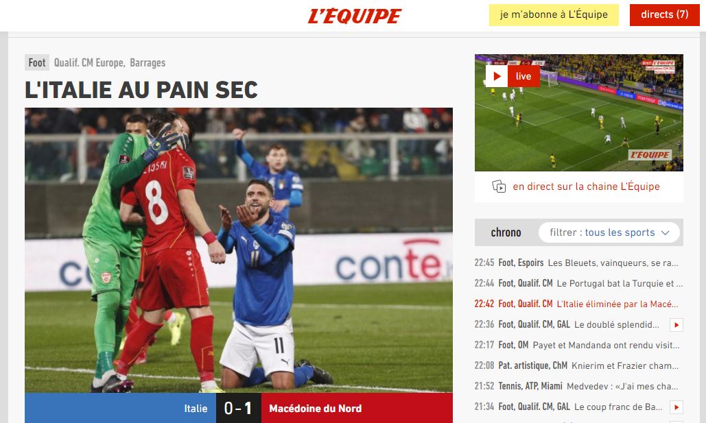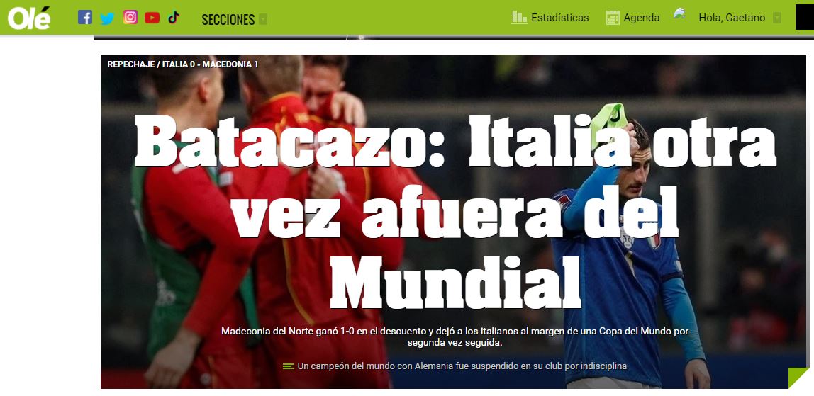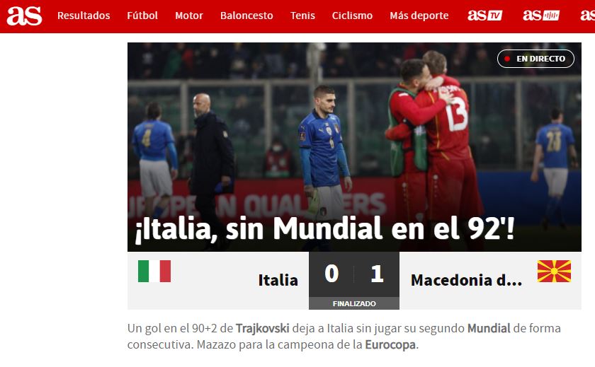 L'Italia per la seconda volta consecutiva non si qualifica ai Mondiali. Ecco come la stampa internazionale ha accolto questa clamorosa notizia.