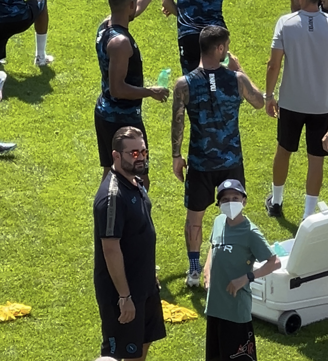 Bel gesto degli azzurri al termine dell'allenamento mattutino odierno. Foto di gruppo con tutta la squadra per un giovanissimo tifoso che anche ieri si era intrattenuto a bordo campo con il presidente Aurelio De Laurentiis, il vice presidente Edo e il mister Antonio Conte. Di seguito le immagini.