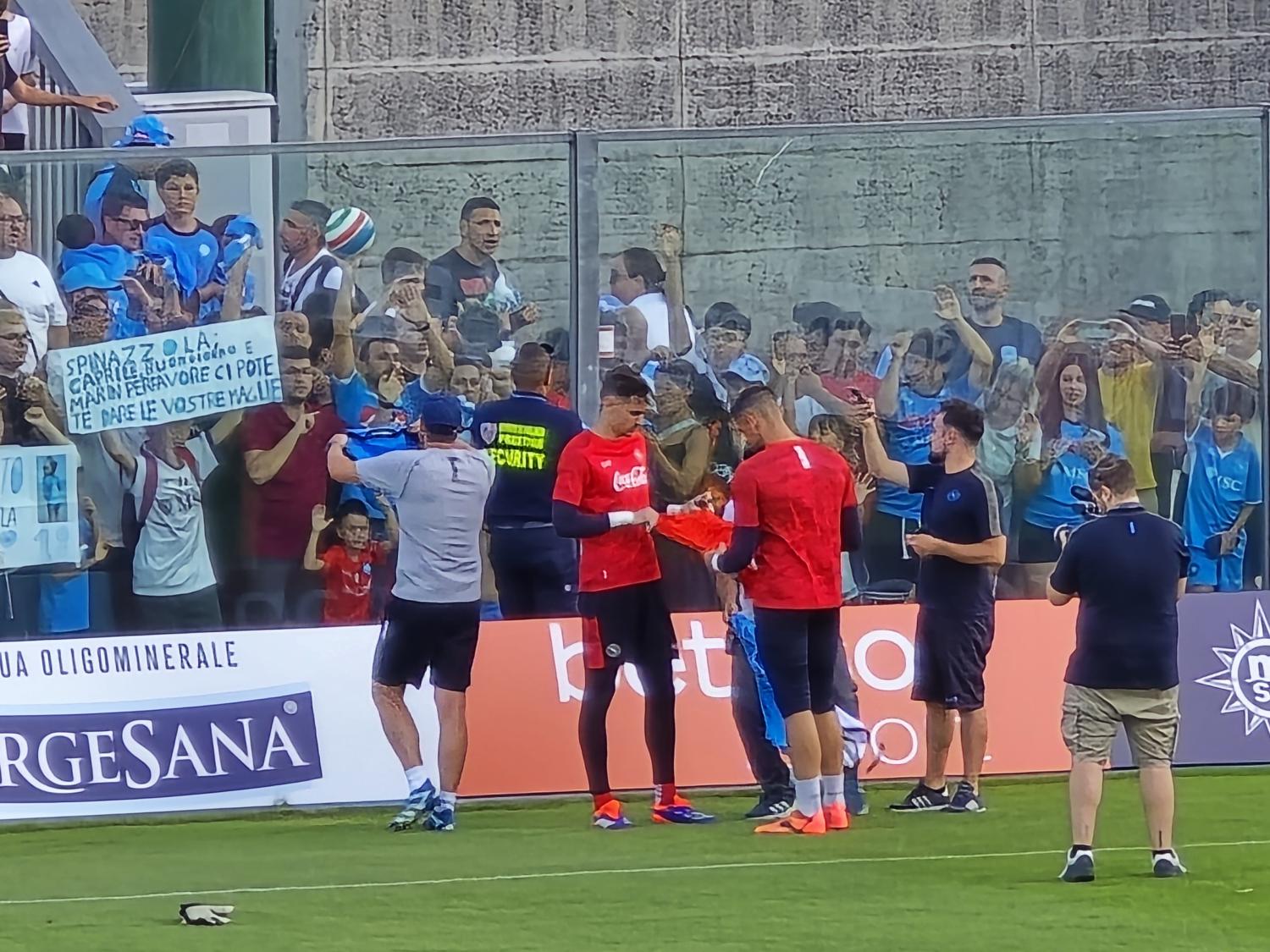 Al termine dell'allenamento dei portieri, nella seduta pomeridiana del sesto giorno di ritiro a Castel di Sangro, Elia Caprile e Alex Meret si sono recati nei pressi del settore Distinti. Un bel gesto verso i tifosi: i due estremi difensori si sono fermati per autografi, i supporters gli hanno lanciato di tutto.