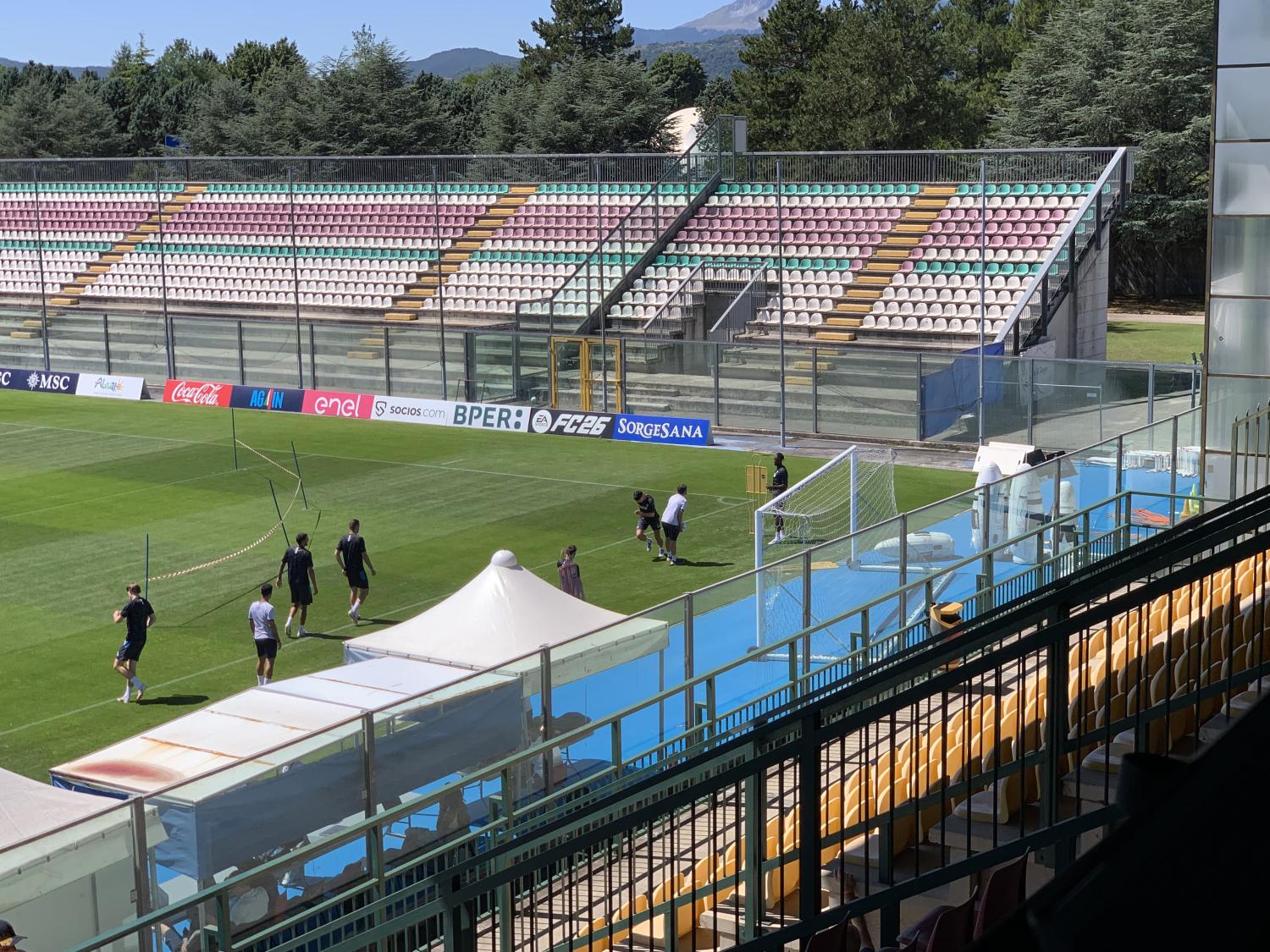 Assente invece Mathias Olivera, che ieri durante la prima seduta pomeridiana aveva accusato un problema al polpaccio della gamba destra. Non partecipa all'allenamento neanche Vergara, che resta a bordo campo in scarpette da ginnastica. Di seguito le immagini raccolte dai nostri inviati a Castel di Sangro.