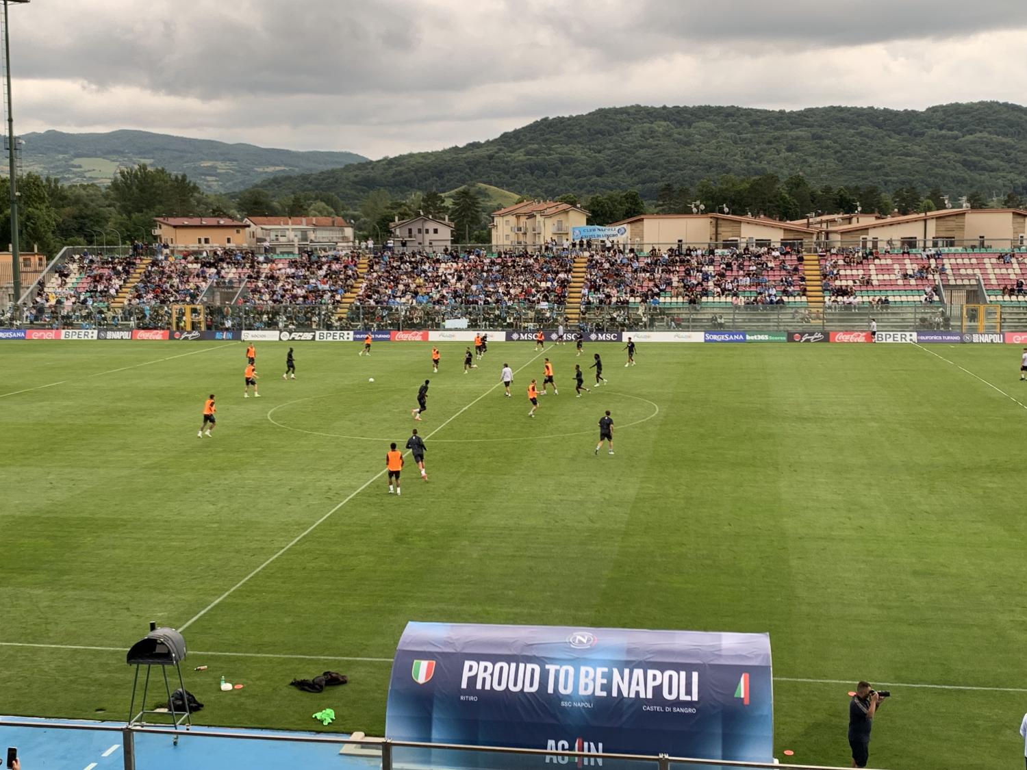 Prima seduta a Castel di Sangro per il Napoli di Antonio Conte. Dopo la prima parte della preparazione estiva conclusa a Dimaro il 27 luglio, i campioni d'Italia iniziano la seconda fase in Abruzzo. Azzurri al gran completo per il primo allenamento sul campo dello Stadio Teofilo Patini.