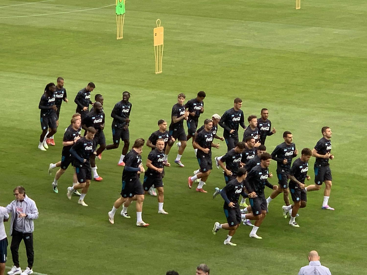 Presenti in gruppo anche i reduci da infortuni e affaticamenti muscolari: Alessandro Buongiorno, Billy Gilmour, Frank Zambo Anguissa, Scott McTominay e Giovanni Simeone. Dopo una prima fase di riscaldamento i ragazzi di Conte hanno svolto lavoro tecnico-tattico, McTominay, Buongiorno, Simeone, Gilmour e Politano non hanno preso parte a questa fase. Di seguito le immagini raccolte dai nostri inviati.